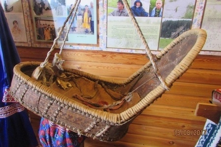 Люльки у хантов украшались знаками, предназначенными для защиты ребёнка. Мотивы наносили на боковые стенки и подвесы: зигзаги символизировали воду как очищающую и оберегающую силу, треугольники — женское начало и покровительство предков, а повторяющиеся геометрические линии считались барьерами от злых духов. Орнамент служил своеобразным «щитком» для ребёнка в первые месяцы жизни.