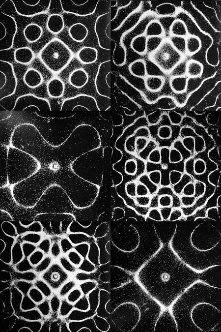 Узоры Хладни — это явление, при котором вибрация создаёт на поверхности потрясающие геометрические узоры. Оно демонстрирует, как звук воздействует на материальные объекты и делает невидимые колебания видимыми.