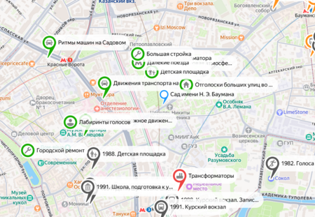 — В разделе «Примеры и проекты» представлены конкретные кейсы звукового картографирования в разных городах.