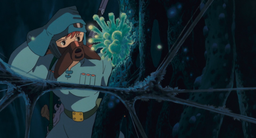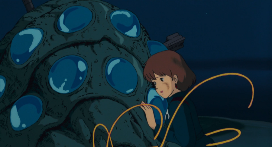 В постапокалиптическом мире выжившим приходится бороться с ядовитым Лесом, который выпускает токсичный газ и распространяется за счет гигантских жуков. Деревни и города боятся зловещей и никого не щадящей природы, за исключением главной героини, Навсикаи, которая имеет с ним особую связь. Девушка бережно и тепло относится к Лесу и уважает его — она понимает, что на самом деле он защищается от губительного влияния людей, потому в заключение мультфильма, когда ее народу грозит смертельная опасность, у нее получается остановить надвигающихся жуков и создать гармонию между человечеством и природой.