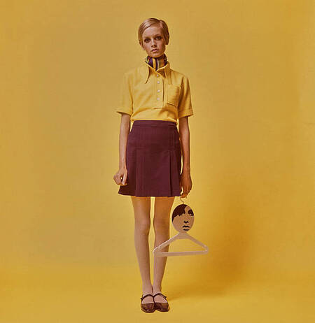 Твигги в оранжевом жилете и шортах, студийный портрет. Лондон, 10 июня 1967 года. Popperfoto via Getty Images. URL: https://www.gettyimages.fi/detail/uutiskuva/studio-portrait-of-english-fashion-model-twiggy-aged-17-uutiskuva/2225585264 (дата обращения: 26.11.2025).