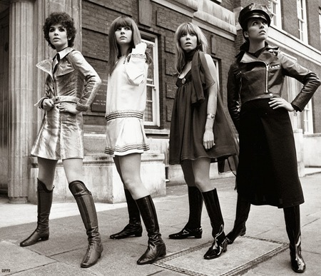Молодые женщины в мини‑платьях и сапогах до колена на улице Лондона. Ок. 1966–1968 годов. URL: https://byronsmuse.wordpress.com/2014/01/10/1960s-swinging-london-fashion/ (дата обращения: 24.11.2025).