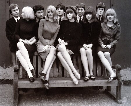 Swinging Sixties часто описываются как время, когда Лондон превратился из серого послевоенного города в яркую столицу молодёжной культуры. В этом образе особое место занимают улицы Кингс‑роуд, Карнаби‑стрит и другие городские пространства, где мини‑юбка появляется прежде всего в уличной среде. Уличные фотографии середины 1960‑х показывают, как короткие платья и юбки входят в повседневный гардероб самых разных горожанок: школьниц, секретарш, продавщиц, студенток. На этих кадрах мини не выглядит эксцентричной редкостью, а становится нормой для определённой части молодёжи.