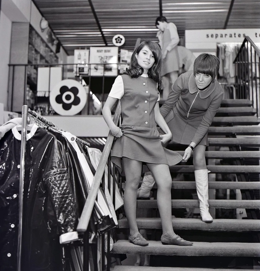 Покупательницы в мини‑платьях в магазине Мэри Куант на Кингс‑роуд. Лондон, 1960‑е годы. Museum of London. URL: https://www.londonmuseum.org.uk/collections/london-stories/how-mary-quant-revolutionised-1960s-fashion/ (дата обращения: 24.11.2025).