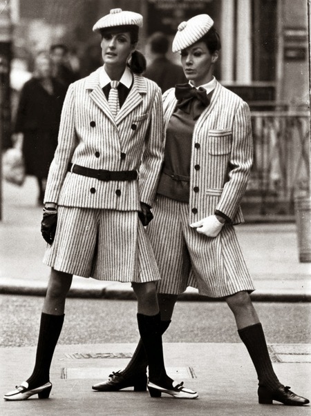 Две лондонские девушки в коротких полосатых костюмах от Christian Dior. UPI, 12 мая 1966 года. Источник: Vintage Everyday. URL: https://www.vintag.es/2014/02/women-in-mini-skirts-in-1960s.html (дата обращения: 26.11.2025).