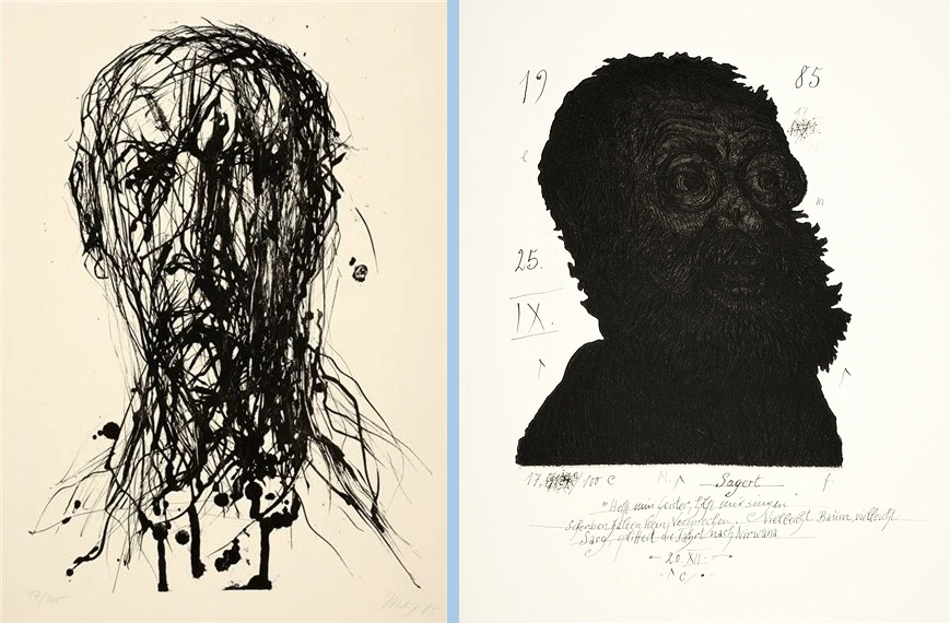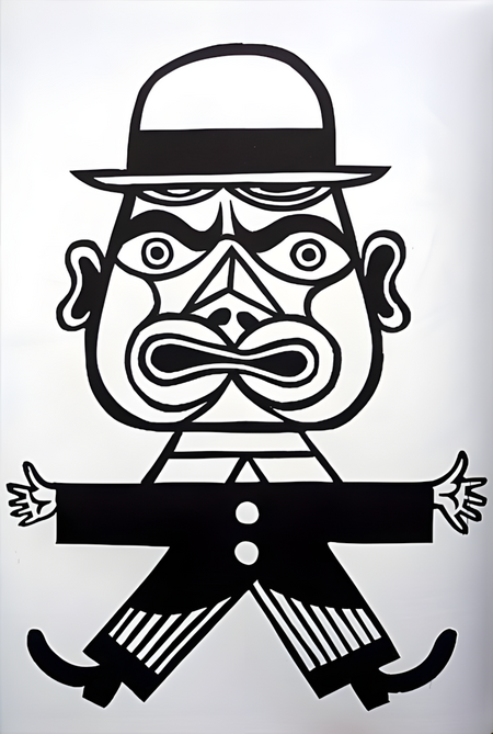 Лица с увеличенными чертами, «перекрученная» анатомия и акцентные линии создают образы, граничащие со страданием, напряжением и тревогой. Вагенбрет адаптирует искаженное формообразование экспрессионистов, создавая узнаваемый образ значок — большая голова в профиль, крупный глаз с длинными ресницами и пухлые губы.