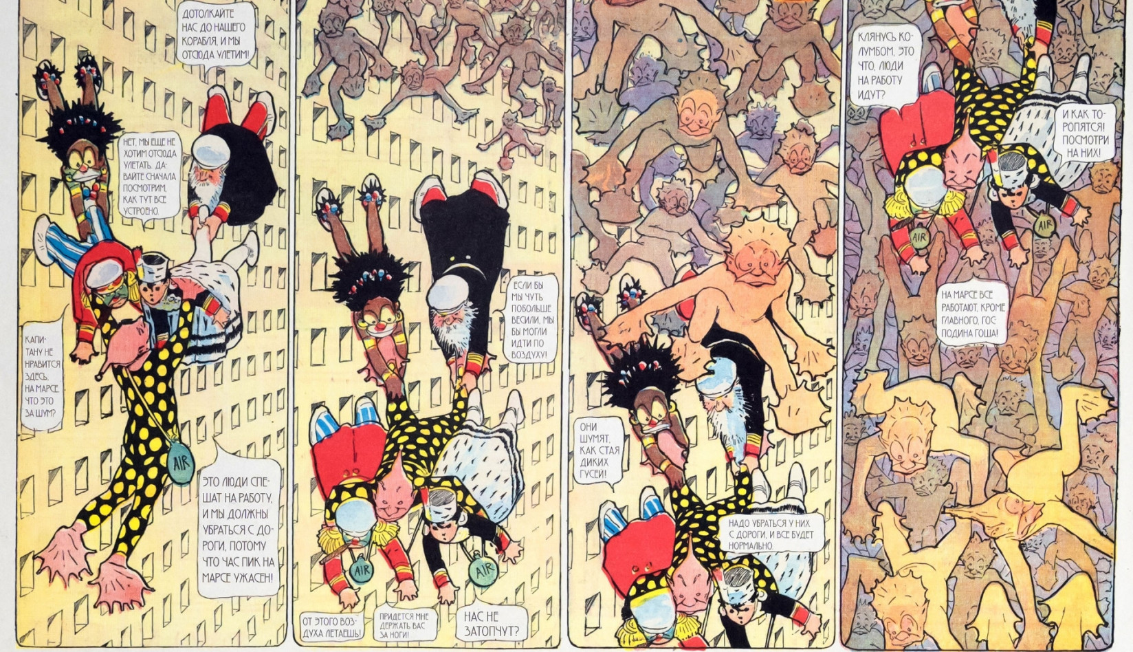 Важно и то, как Маккей работает с пространством листа как с экраном. Он сознательно нарушает привычную сетку комикса, заставляя взгляд читателя двигаться по сложной траектории: диагонали, спирали, волны. Позже в его фильмах можно будет увидеть подобные траектории уже в движении камеры и персонажей.