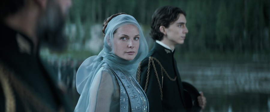 Художники по костюмам Жаклин Уэст и Боб Морган создали концепцию «modieval» — термин, объединяющий слова «modern» (современный) и «medieval» (средневековый), — превратив далёкое будущее в визуальную реинтерпретацию феодального прошлого. Дом Атрейдесов, благородная династия с планеты Каладан, становится воплощением европейской аристократической традиции, где каждый элемент костюма несёт символическое значение власти, статуса и обречённости.