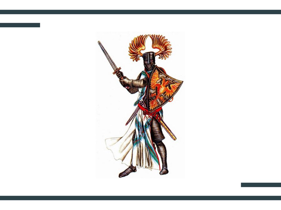 Геральдические гербы, изображённые на доспехах рыцарей с XII века, породили традицию костюма «ми-парти» — одежды, разделённой по вертикали на две половины разного цвета, соответствующие фамильному гербу.
