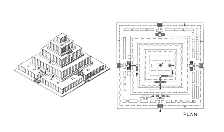 Зиккурат, многоступенчатая храмовая башня, являющаяся культовым сооружением Месопотамии. Первые архитектурные памятники данного типа — были обнаружены археологами в середине XIX — начале XX века на территории древнего Междуречья, в пределах современного Ирака, а также на прилегающих районах Сирии и Ирана. Примечательно, что в отличие от египетских пирамид, где ступени создают резкую динамику устремления вверх, зиккураты формируют высоту постепенно: терраса за террасой, создавая впечатление спокойного восхождения к сакральной вершине. Примером служит зиккурат в Уре, посвященный богу луны Нанне. Три мощных, чётко выраженных яруса, связанные широкими лестницами, воспринимались как пространство, где мир людей соприкасается с миром богов. Жрецы поднимались к святилищу наверх, а боги согласно верованиям снисходили на землю.