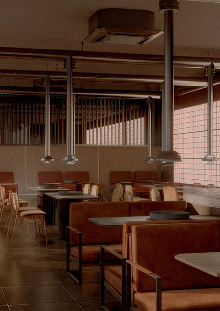 Дизайн-проект интерьера для японского ресторана «Yaki-DIY» в Санкт-Петербурге. Ресторан находится по адресу: улица Восстания, дом 26. Площадь проектирования составляет 235 м². Концепция зала раскрывается в названии: «Yaki-DIY» — «Приготовь на гриле Сам». Это место, где ты сам становишься шефом своего идеального японского ужина.