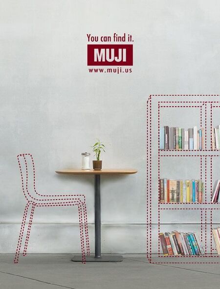 Ниже представлены различные рекламные кампании бренда MUJI. Философия бренда звучит так «качественные товары без лейбла». В самом этом слогане уже заложена идея «ма». Отсутствие бренда как пустота, передающая посыл бренда.
