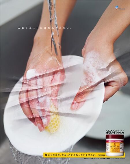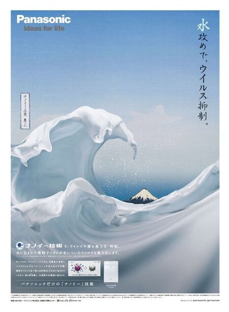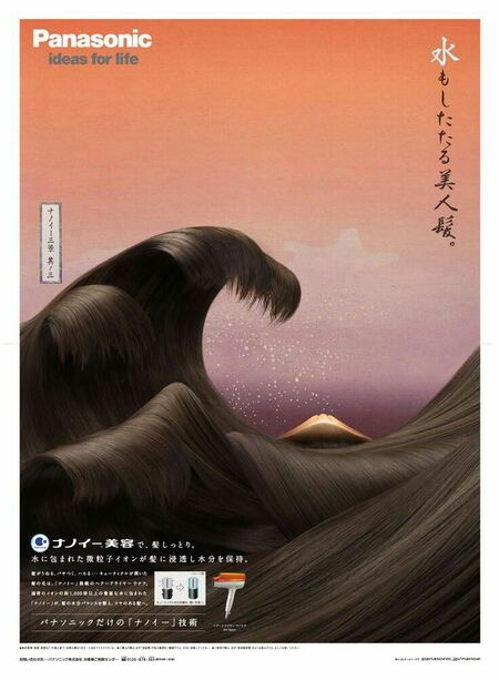 В этой рекламной кампании продукты бренда воплощают самые необычные и творческие задумки клиентов. В данном случае волосы и крем повторяют форму волны с картины Кацусики Хокусая. Здесь присутствуют концепции ваби-саби и омотэнаси.