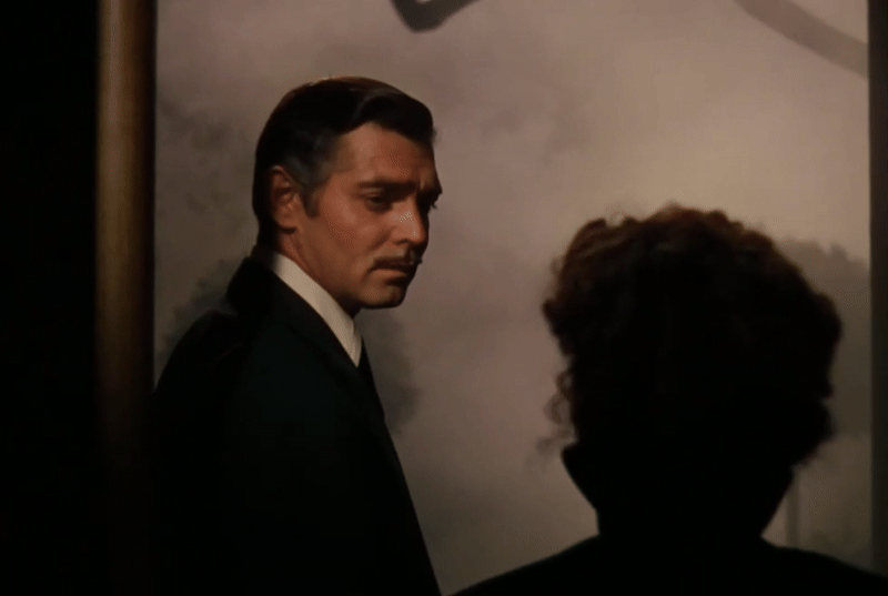 После смерти Мелани Скарлетт спешит к Ретту, надеясь, что её прозрение всё изменит, но встречает холод и насмешку. Его ирония и равнодушие становятся актом власти: он смеётся над её поздним признанием, демонстрируя эмоциональное превосходство. Этот смех — не лёгкость, а форма жестокого разрыва, в котором подавленные чувства вырываются наружу через сарказм и отчуждение.