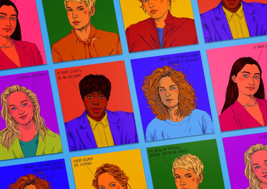 Серия ярких портретов участниц Женского стендапа