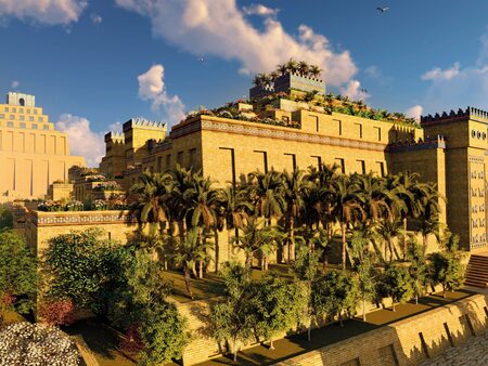 В VII до Рождества Христова не было в мире города больше Вавилона. Расположенный посреди плоской равнины он поднимался к небу своими ступенчатыми зданиями дворцами, крепостями и храмами, с парками на терассах. Рассказы об висячих садах Вавилона до нас донес отец истории — Геродот. Он описывал четырехярусный зиккурат с колонными портиками, крыша которого служила водонапорной башней, а на ступенях были разбиты роскошные сады. По легенде, царь Вавилона построил эти сады для своей жены, царевны из Мидии, которая скучала по лесистым горам родины. Но похожие сады существовали и в столице Ассирии Ниневии, легенда называет из садами Семирамиды.